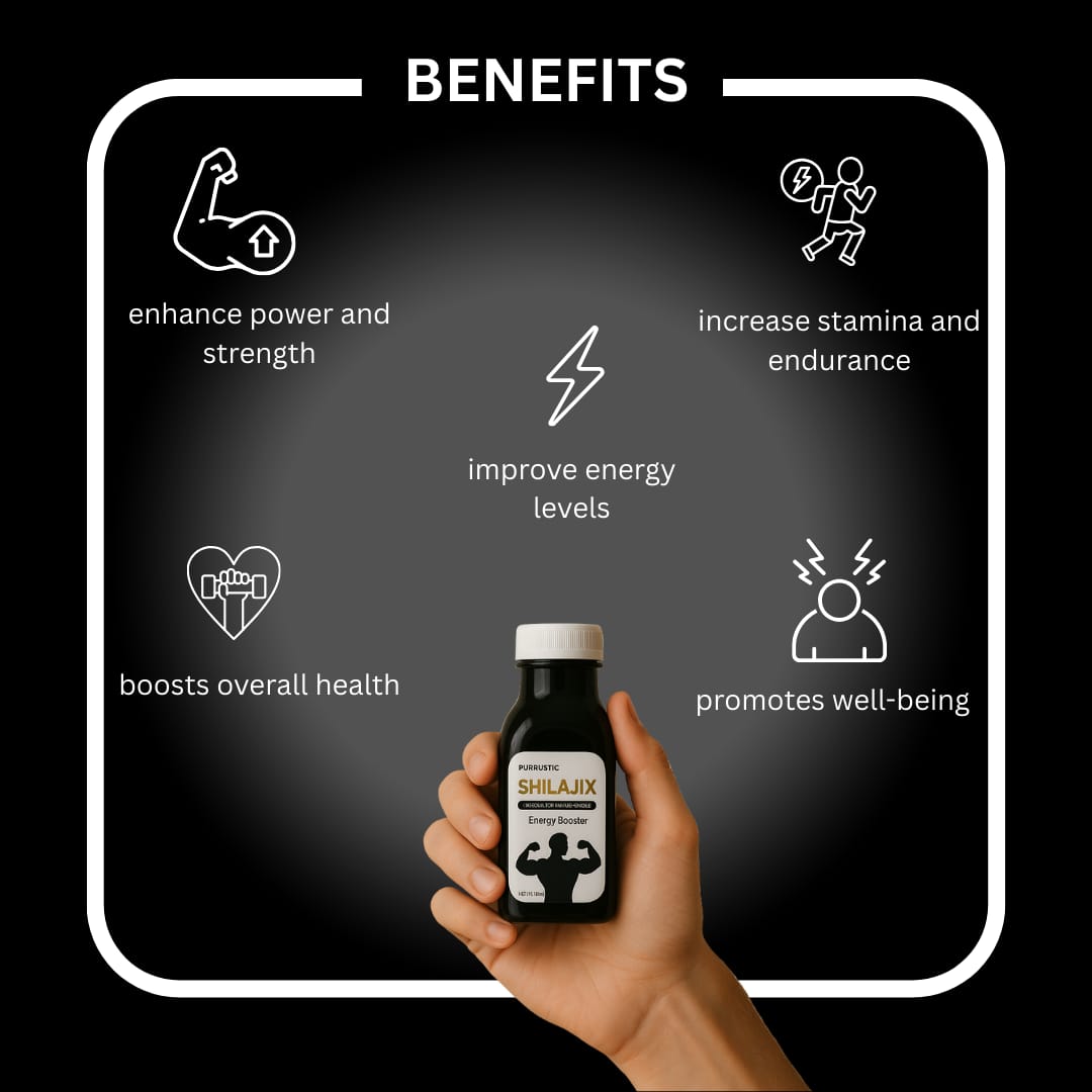 - Introducing Purrustic ShilajiX, your ultimate solution for boosting stamina, energy, and overall well-being. These shots are enriched with pure Shilajit, a powerful natural ingredient known for its ability to enhance physical and cognitive performance. Unlike traditional Shilajit Resin or Shilajit Tablets, our shots offer a convenient and mess-free way to enjoy all the benefits of Shilajit.